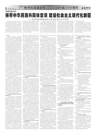 人民日报社论摘要 铸牢中华民族共同体意识 建设社会主义现代化新疆 ——热烈庆祝新疆维吾尔自治区成立七十周年