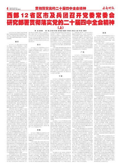 西部12省区市及兵团召开党委常委会研究部署贯彻落实党的二十届四中全会精神(上)
